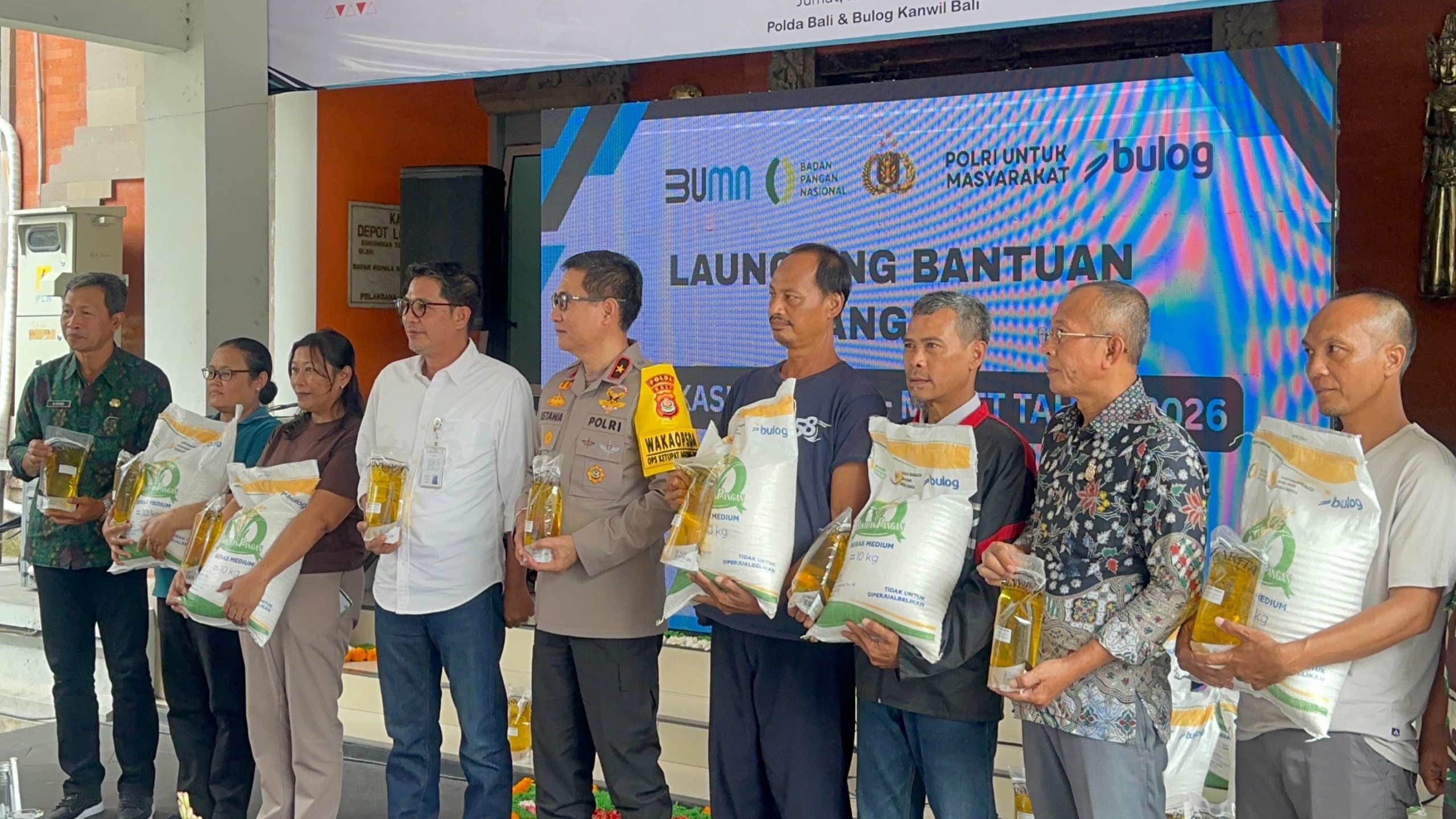 Denpasar, 18 Maret 2026 — Perum BULOG melaksanakan launching penyaluran bantuan pangan alokasi Februari–Maret 2026 secara serentak di seluruh Indonesia. Namun, khusus di Provinsi Bali, pelaksanaan kegiatan disesuaikan dengan rangkaian Hari Raya Nyepi, terutama saat Pengerupukan.