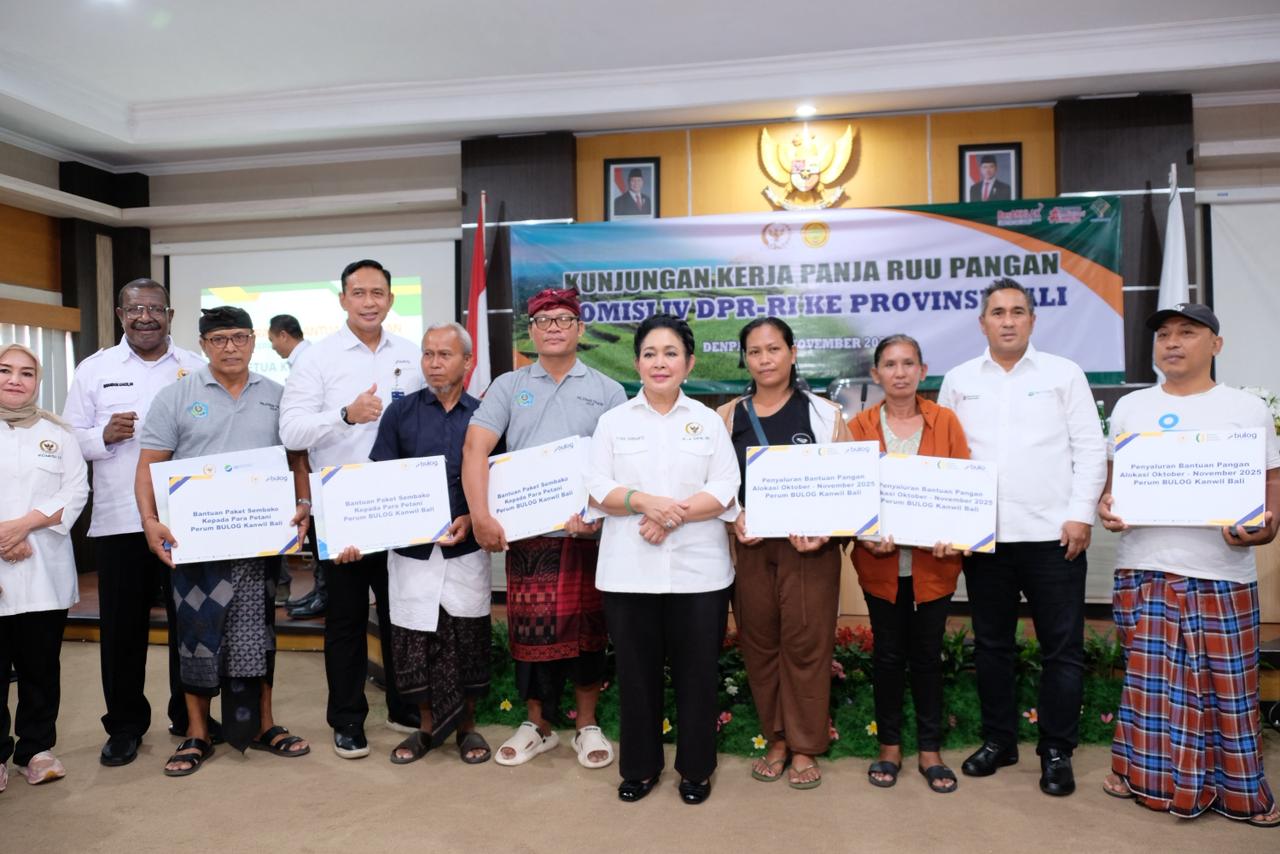DENPASAR — Perum BULOG menegaskan komitmennya dalam memperkuat ketahanan pangan nasional saat mendampingi kunjungan kerja Panitia Kerja (Panja) Penyusunan RUU Pangan Komisi IV DPR RI di Bali pada Kamis (21/11). Direktur Utama BULOG, Letjen TNI (Purn) Ahmad Rizal Ramdhani S.Sos., S.H., M.Han., hadir langsung mendampingi rombongan yang dipimpin Ketua Komisi IV DPR RI, Siti Hediati (Titiek) Soeharto.