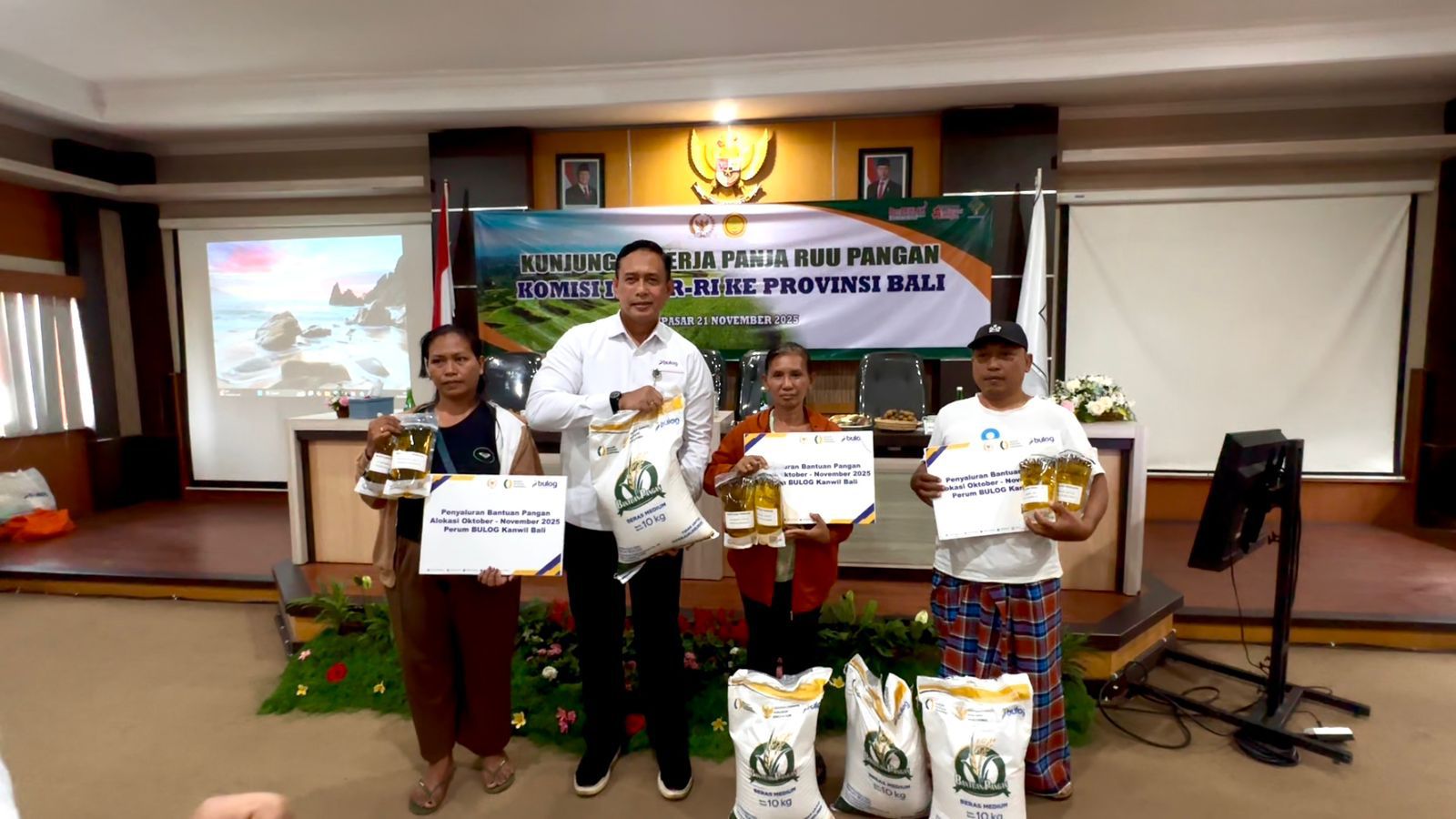 Dalam rangkaian kegiatan kunjungan, Komisi IV DPR RI bersama BULOG juga menyerahkan Bantuan Pangan (Banpang) secara simbolis kepada masyarakat penerima dari Desa Pedungan, Kecamatan Denpasar Selatan. Bantuan alokasi Oktober–November yang disalurkan berupa 20 kilogram beras dan 4 liter minyak goreng per keluarga penerima. BULOG juga menyalurkan paket sembako kepada 30 petani setempat berisi beras 5 kilogram, gula pasir 2 kilogram, dan minyak goreng 2 liter.