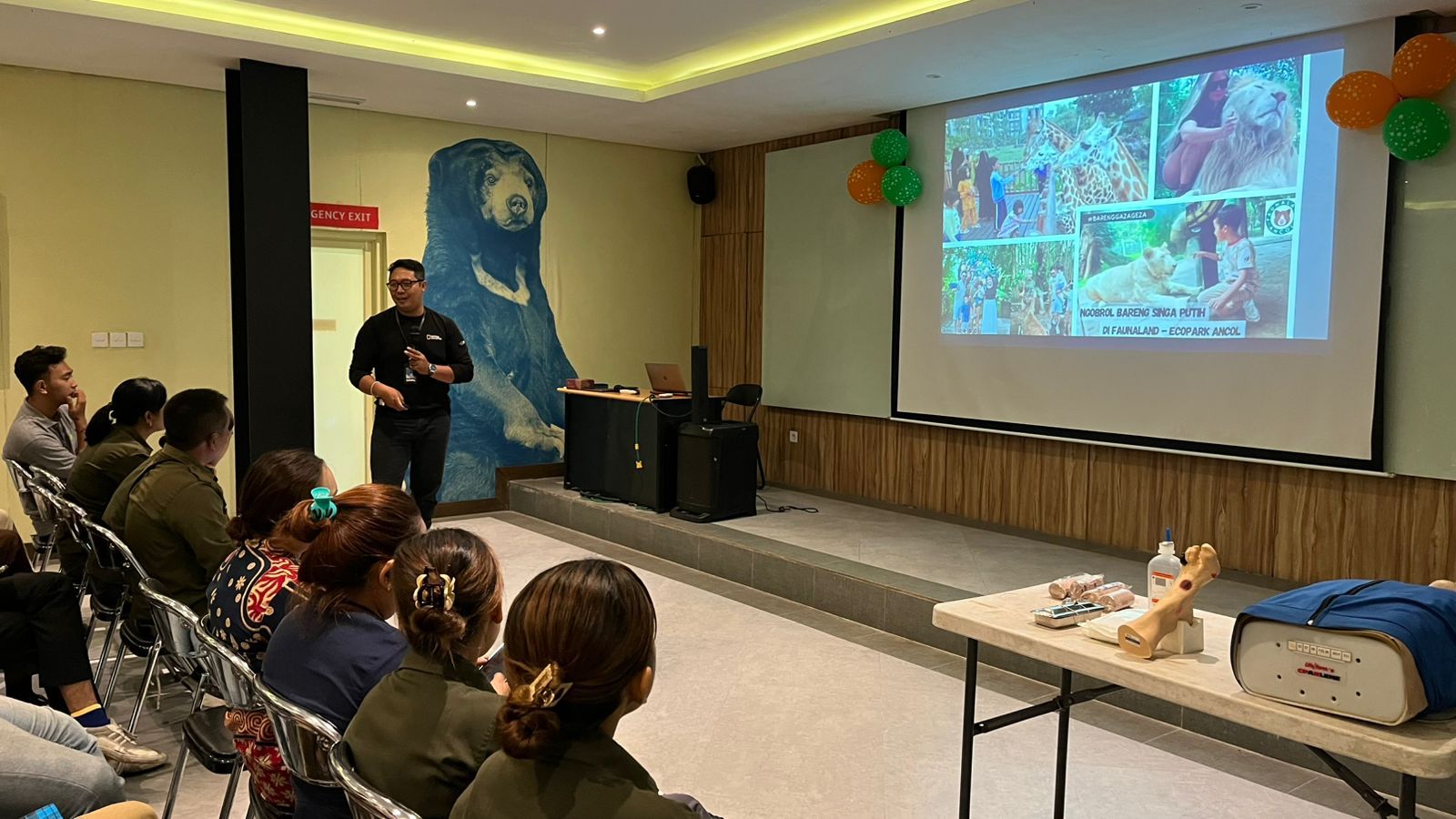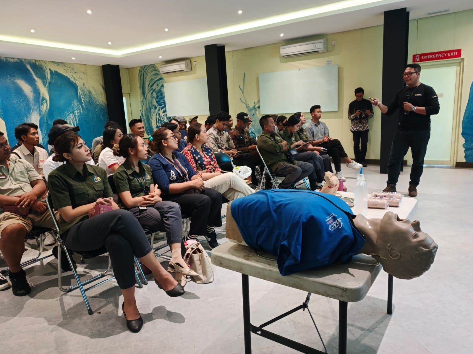 Sebanyak 45 pegawai Bali Zoo dari berbagai divisi operasional, mulai dari perawat satwa, petugas keamanan, hingga petugas kebersihan, mengikuti pelatihan yang digelar pada Sabtu, 2 Oktober 2025. Aktivitas kebun binatang yang menerima ribuan pengunjung pada hari tertentu dinilai meningkatkan potensi interaksi berisiko antara manusia dan satwa.