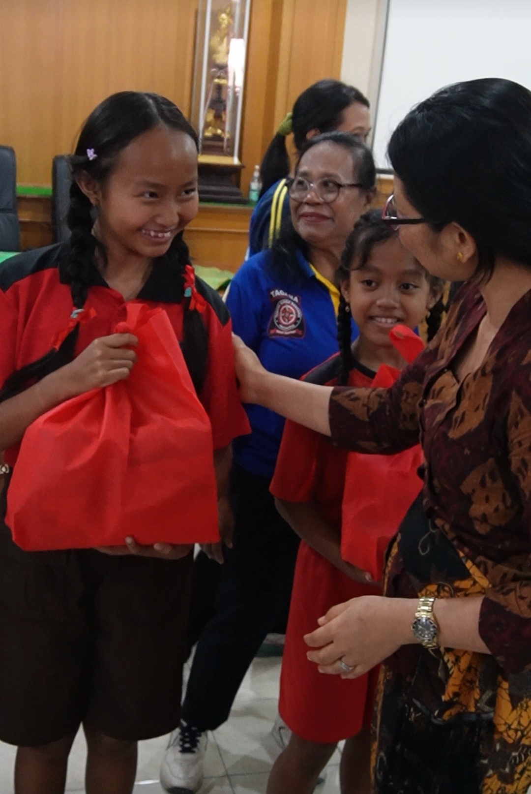 “Nanti belajar yang rajin, mau ya setelah lulus nanti kerja di hotel di dunia pariwisata, ” Bujuknya menyemangati anak – anak yang hadir.