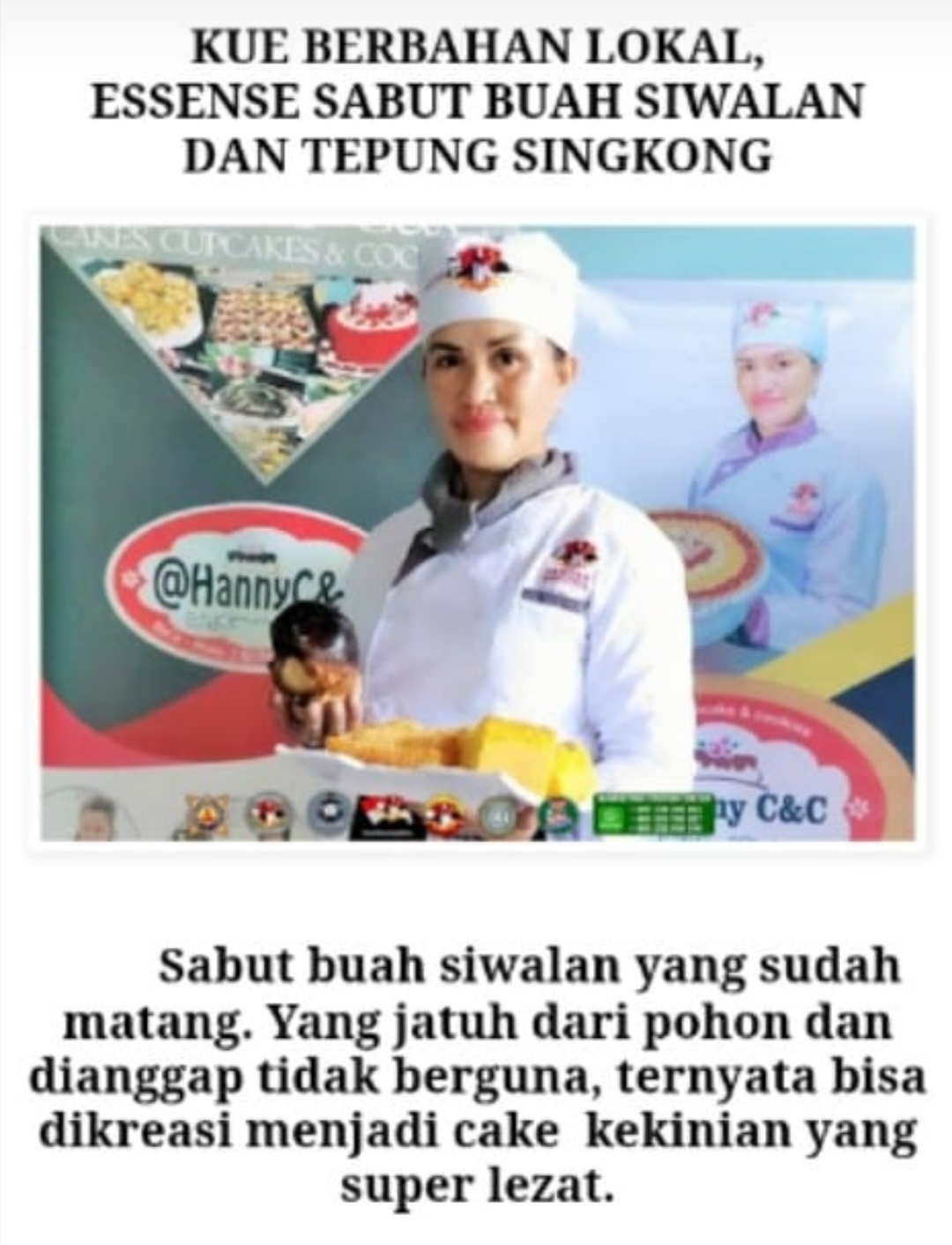 Baru-baru ini, Chef Hanny Aprilitta Fanggidae, SH, Instruktur Tristar Institute Group perwakilan NTT, berhasil menciptakan kue kekinian dari sabut buah siwalan. Kreasinya diberi label “Saboak Cake”. Inovasi ini mengejutkan banyak pihak, terutama masyarakat Rote Ndao dan orang-orang terdekatnya.