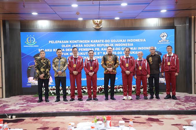 JAKARTA – Jaksa Agung ST Burhanuddin, yang juga menjabat sebagai Ketua Dewan Pembina Pengurus Besar Karate-Do Gojukai Indonesia, secara resmi melepas kontingen atlet Gojukai Indonesia yang akan bertanding dalam The 8th Karate-Do Gojukai Global Championships Japan 2025. Acara pelepasan berlangsung pada Jumat, 1 Agustus 2025, di Aula Lantai 11 Gedung Utama Kejaksaan Agung RI.