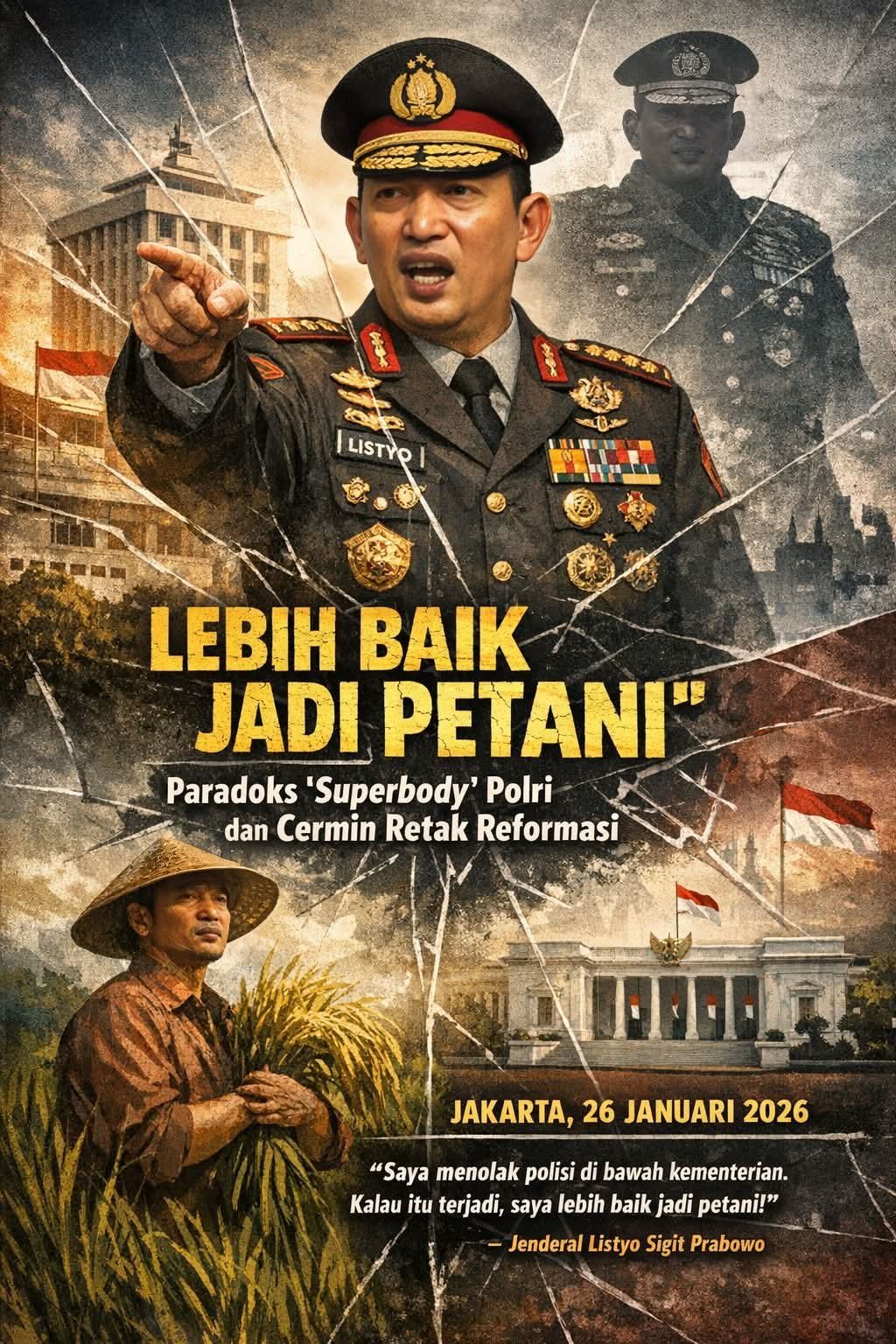 Kapolri bahkan menyampaikan sikap ekstrem sebagai bentuk penegasan komitmennya. Ia menyatakan lebih memilih mengundurkan diri dari jabatannya, bahkan menjadi petani, daripada menerima posisi Menteri Kepolisian yang dinilainya berpotensi melemahkan institusi Polri.