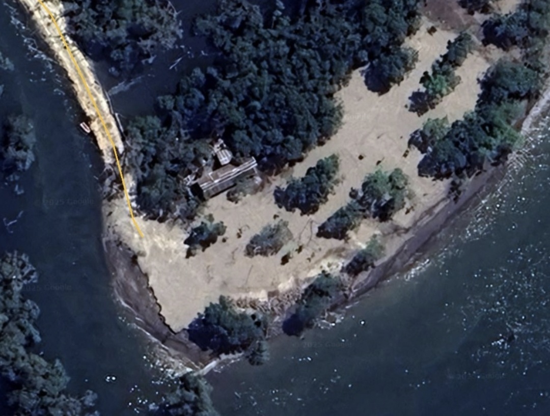 Sumber data: Google Earth, Bhumiku ATR/BPN, KLHK (2025). Peta overlay memperlihatkan posisi tanah timbul dan batas kawasan konservasi.