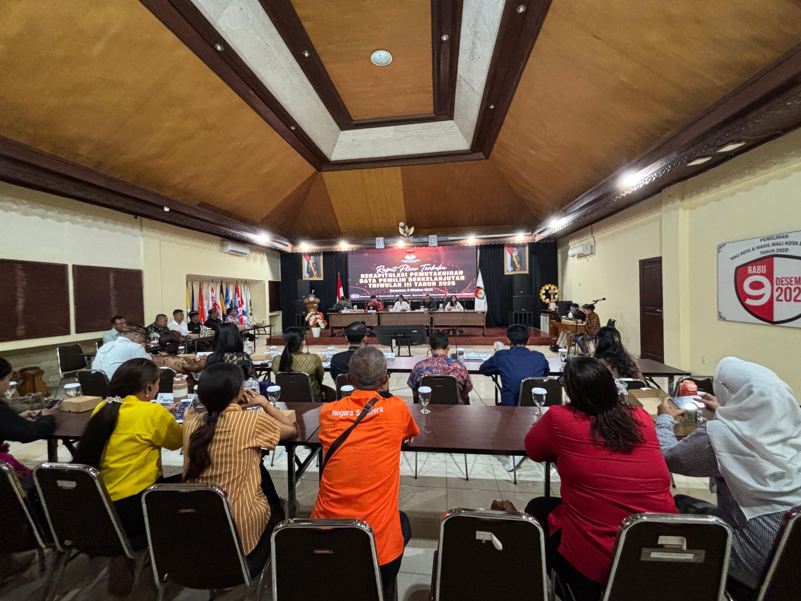 DENPASAR, 2 Oktober 2025 – Komisi Pemilihan Umum (KPU) Kota Denpasar menegaskan komitmennya menjaga akurasi data pemilih dengan menggelar Rapat Pleno Terbuka Rekapitulasi Pemutakhiran Data Pemilih Berkelanjutan (PDPB) Triwulan III Tahun 2025. Acara yang berlangsung di lantai III Kantor KPU Kota Denpasar, Jl. Raya Puputan, turut dihadiri unsur pemerintah daerah, TNI/Polri, kejaksaan, pengadilan, partai politik peserta Pemilu 2024, serta sejumlah instansi terkait.