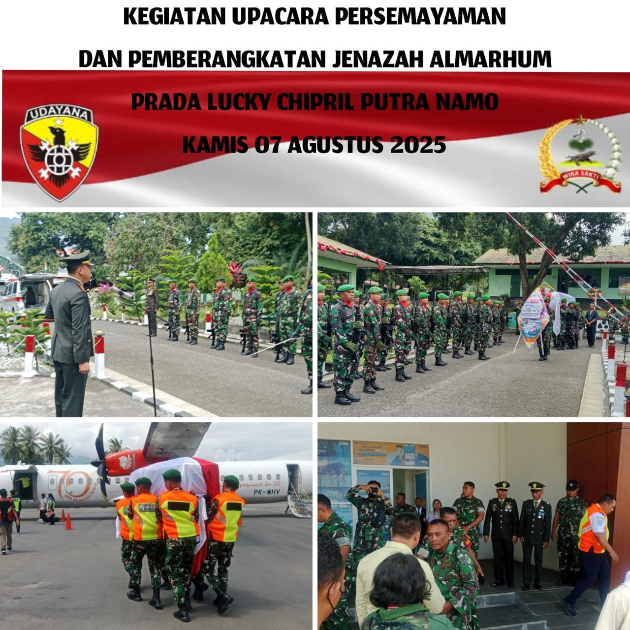 Upacara pelepasan dipimpin oleh perwira pendamping Letda Inf. Made Juni dan Letda Inf. Yafet. Orang tua almarhum turut mendampingi sepanjang prosesi, yang berlangsung penuh penghormatan sebagai bentuk penghormatan terakhir kepada prajurit yang dianggap sebagai salah satu putra terbaik bangsa.
