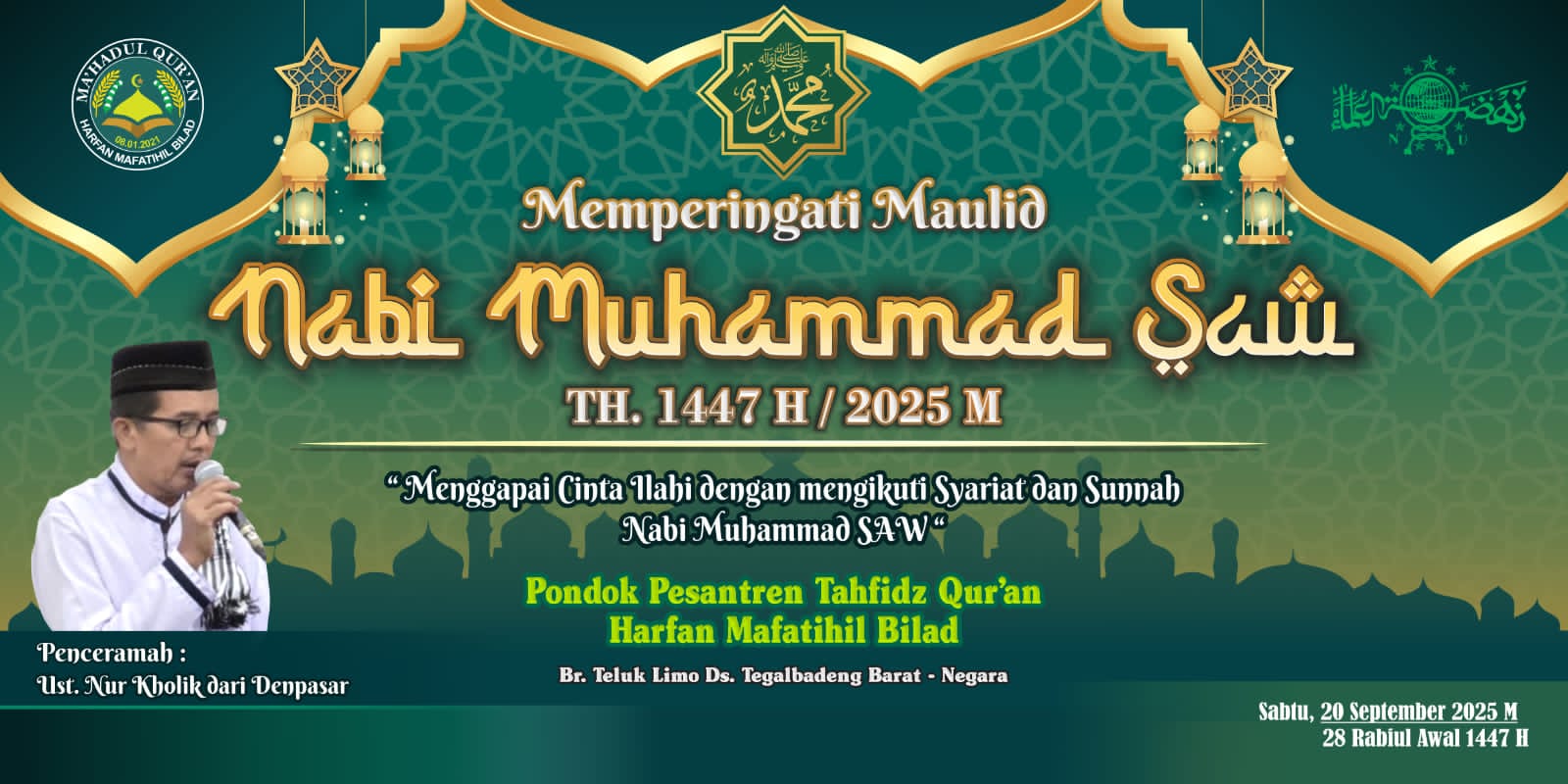 JEMBRANA – Suasana penuh hikmah mewarnai peringatan Maulid Nabi Muhammad SAW 1447 H/2025 M yang digelar Pondok Pesantren Tahfidz Quran Harfan Mafatihil Billad, Banjar Teluk Limo, Desa Tegal Badeng Barat, Negara, pada Sabtu (20/9/2025) malam.