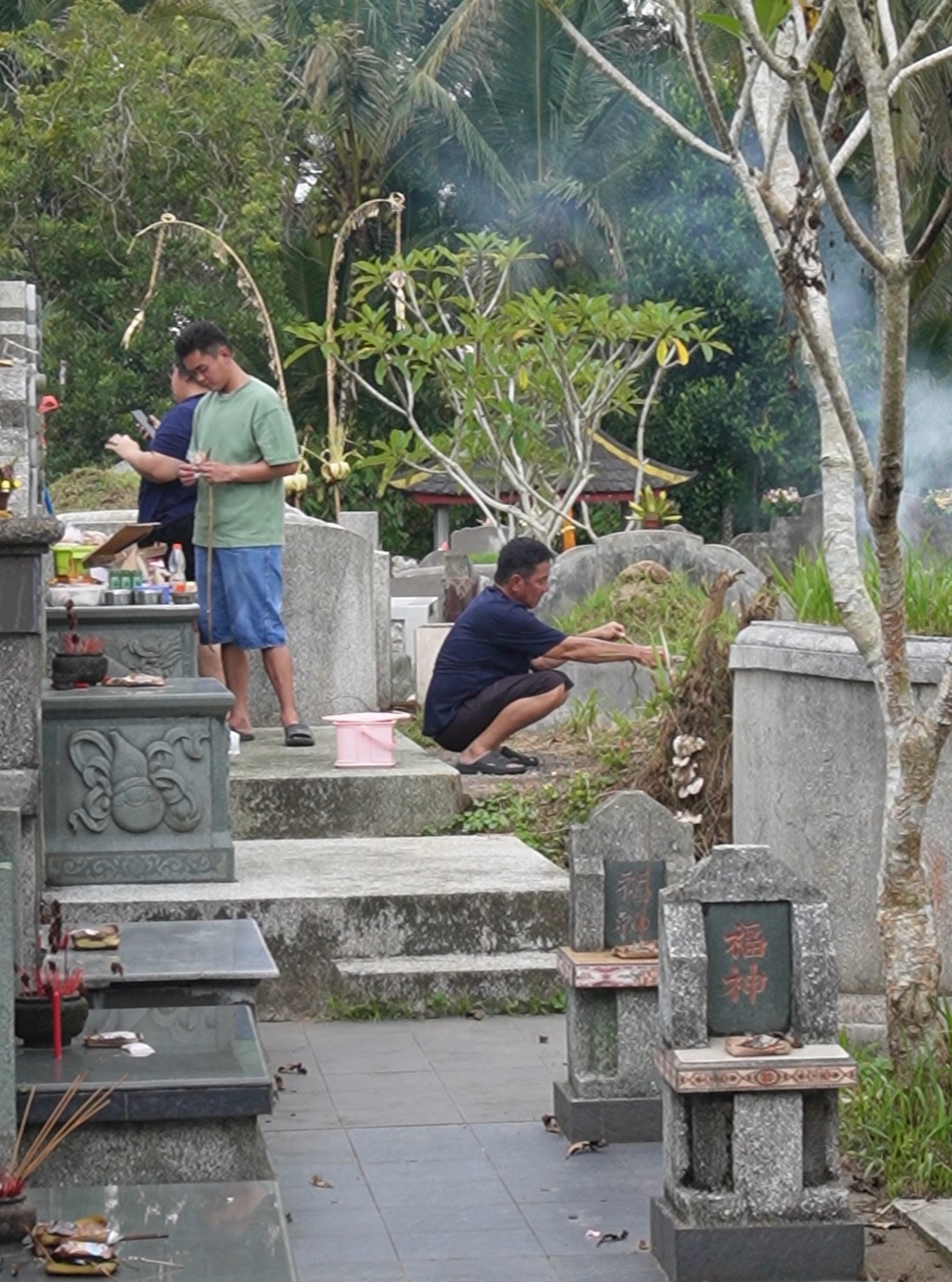 Menemui Nyoman Purna / Tan Gwan Bie selaku Ketua Perkumpulan Suka Duka Sari Semadhi Carangsari mengiyakan bahwa hari ini adalah peringatan tradisi Cengbeng.