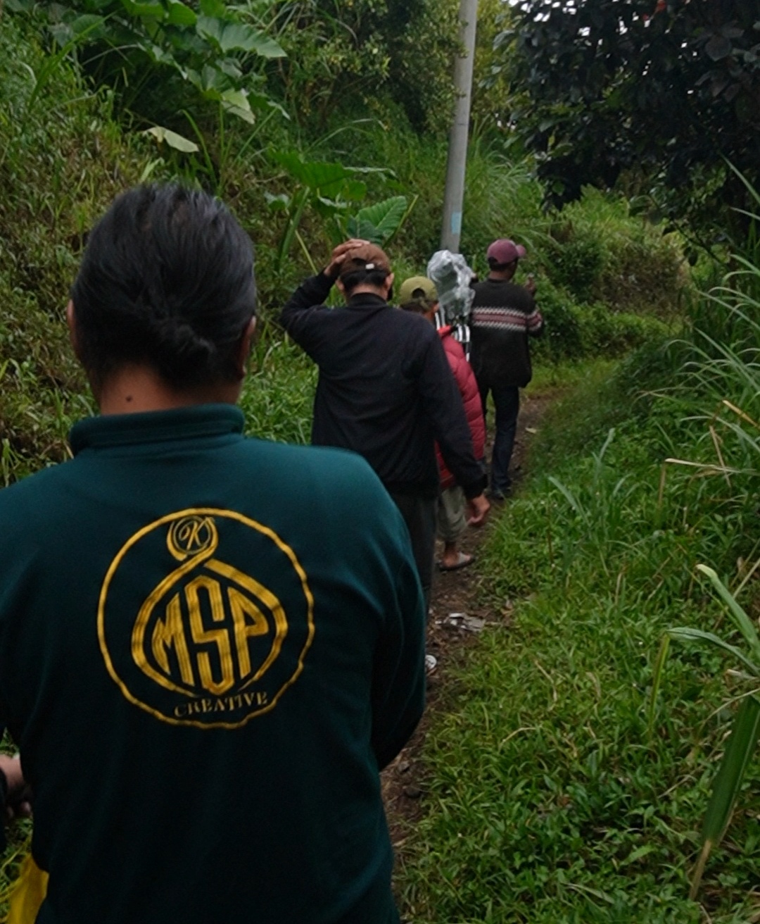 Tim Creative MSP kirim bantuan kursi roda melewati medan jalan yang ekstrem dan curam.