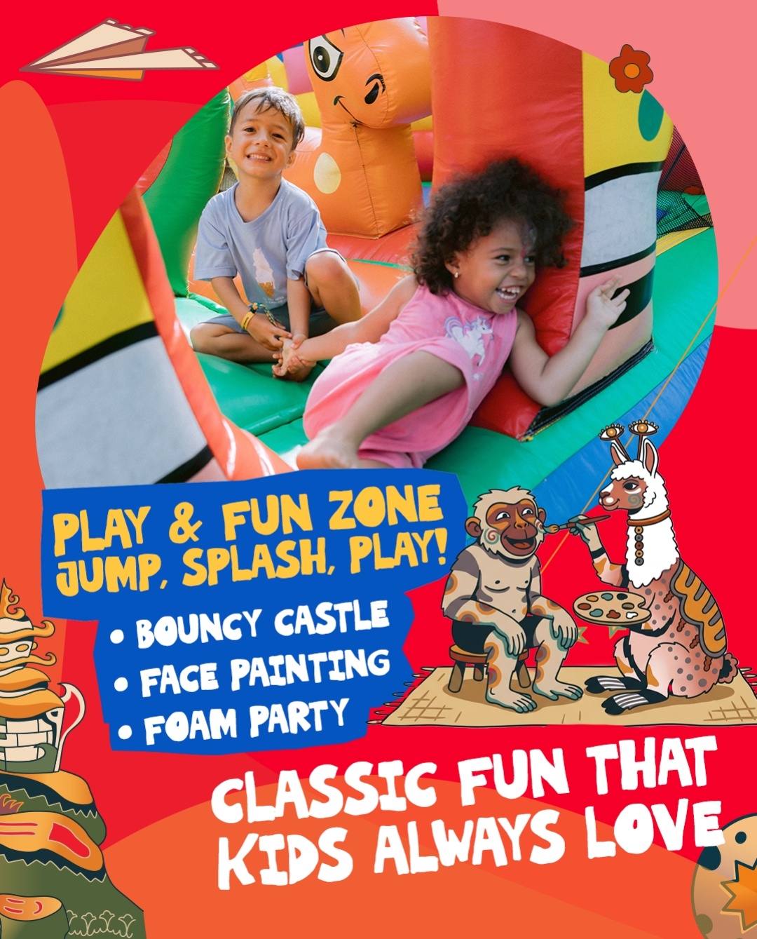 Festival yang berlangsung dari pukul 10.00 hingga 18.00 WITA tersebut menghadirkan beragam aktivitas interaktif bagi anak-anak. Mulai dari wahana bermain seperti bouncy castle dan foam party, hingga kegiatan edukatif seperti drawing corner, lokakarya kreatif, serta interaksi langsung dengan hewan melalui program animal encounters.