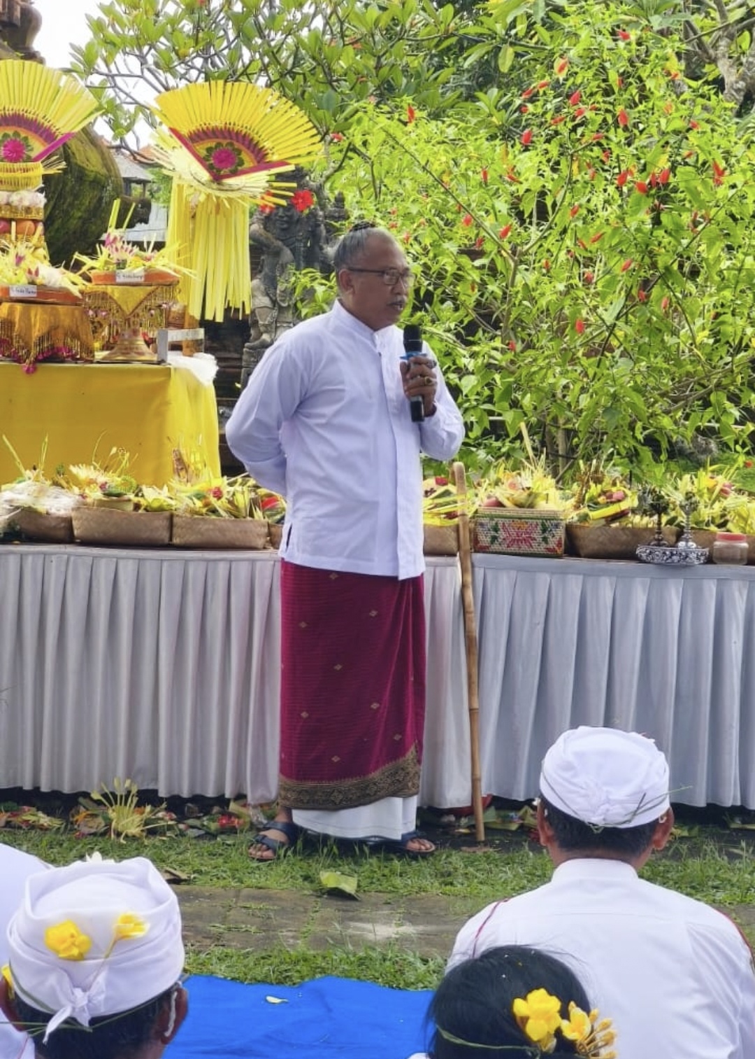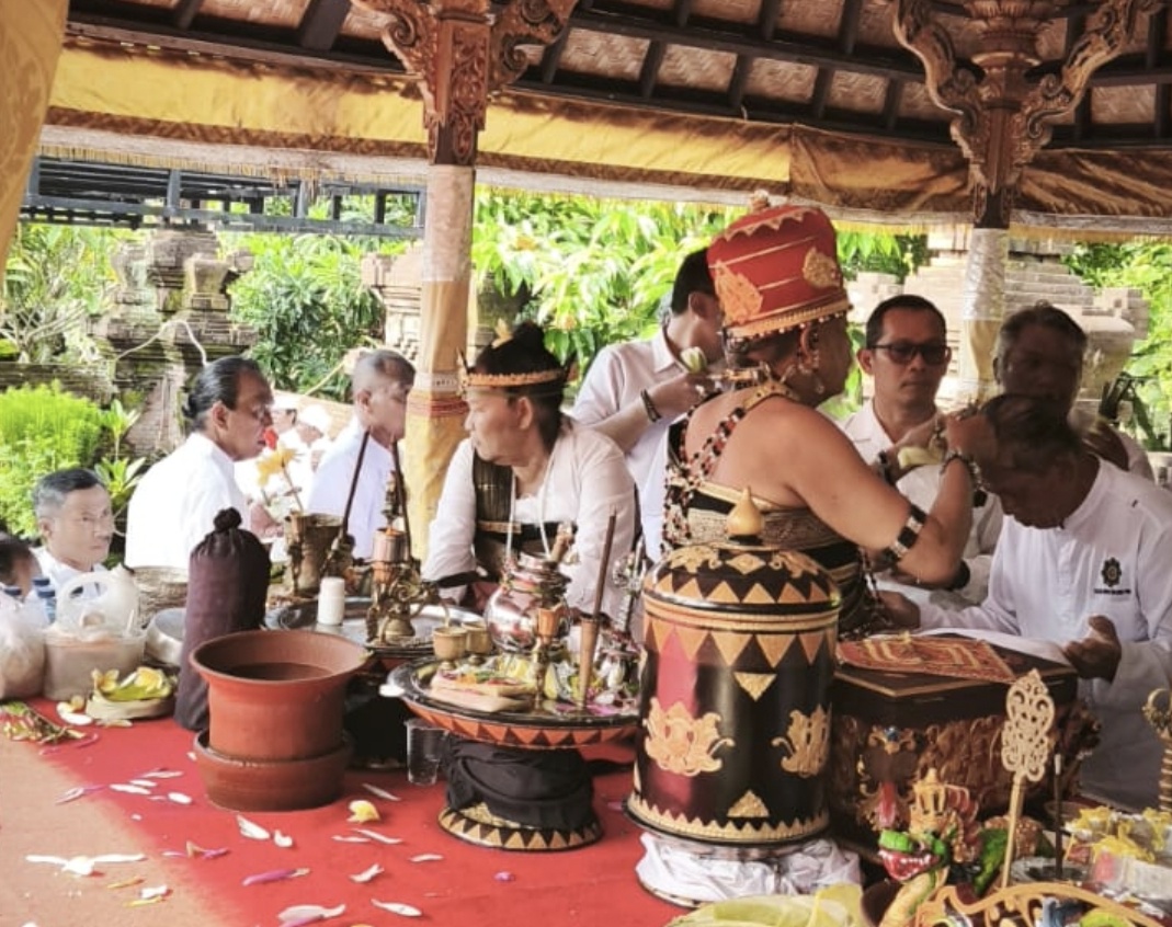 Upacara tersebut dipuput oleh sejumlah sulinggih, yakni Ida Pandita Mpu Nabe Jaya Acharya Nanda, Ida Rai Bujangga Putra Sara Sri Satya Jyoti, Ida Bhagawan Wajrasattwa Dwijananda, Ida Pandita Mpu Jaya Ashita Santhi Yoga, serta Ida Pandita Mpu Jaya Ananda Yoga.