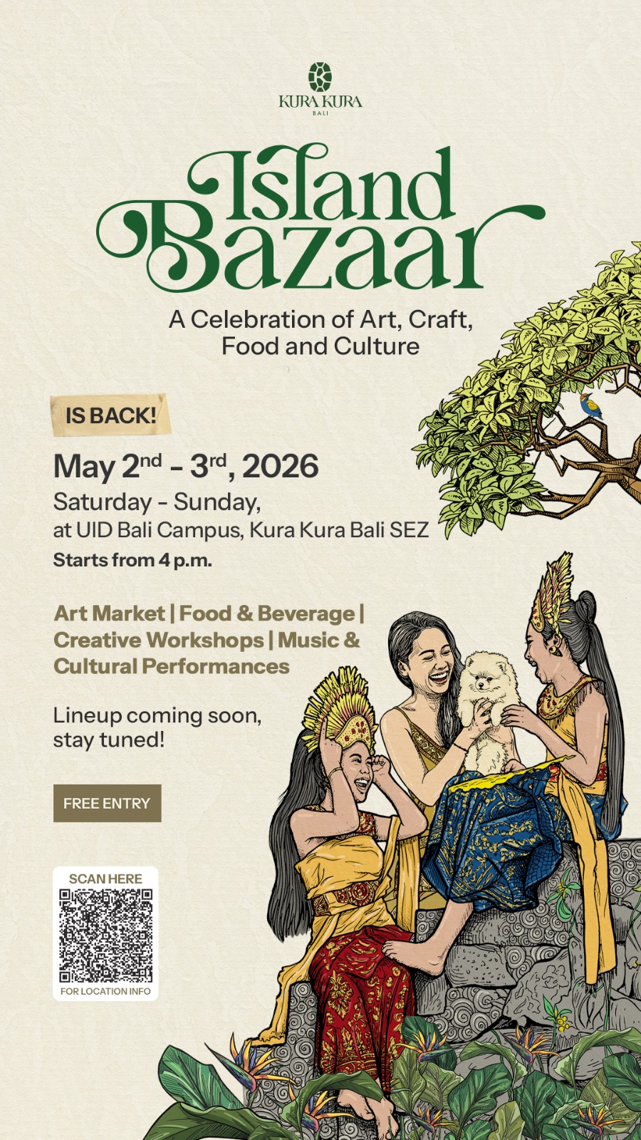 DENPASAR – Kawasan Ekonomi Khusus (KEK) Kura Kura Bali kembali menghadirkan ruang temu kreatif melalui gelaran Island Bazaar edisi kedua yang akan berlangsung pada 2–3 Mei 2026. Bertempat di UID Bali Campus, kawasan Serangan, kegiatan ini dijadwalkan mulai pukul 16.00 hingga 21.00 WITA, menawarkan pengalaman pasar senja dengan nuansa budaya Bali yang kental.