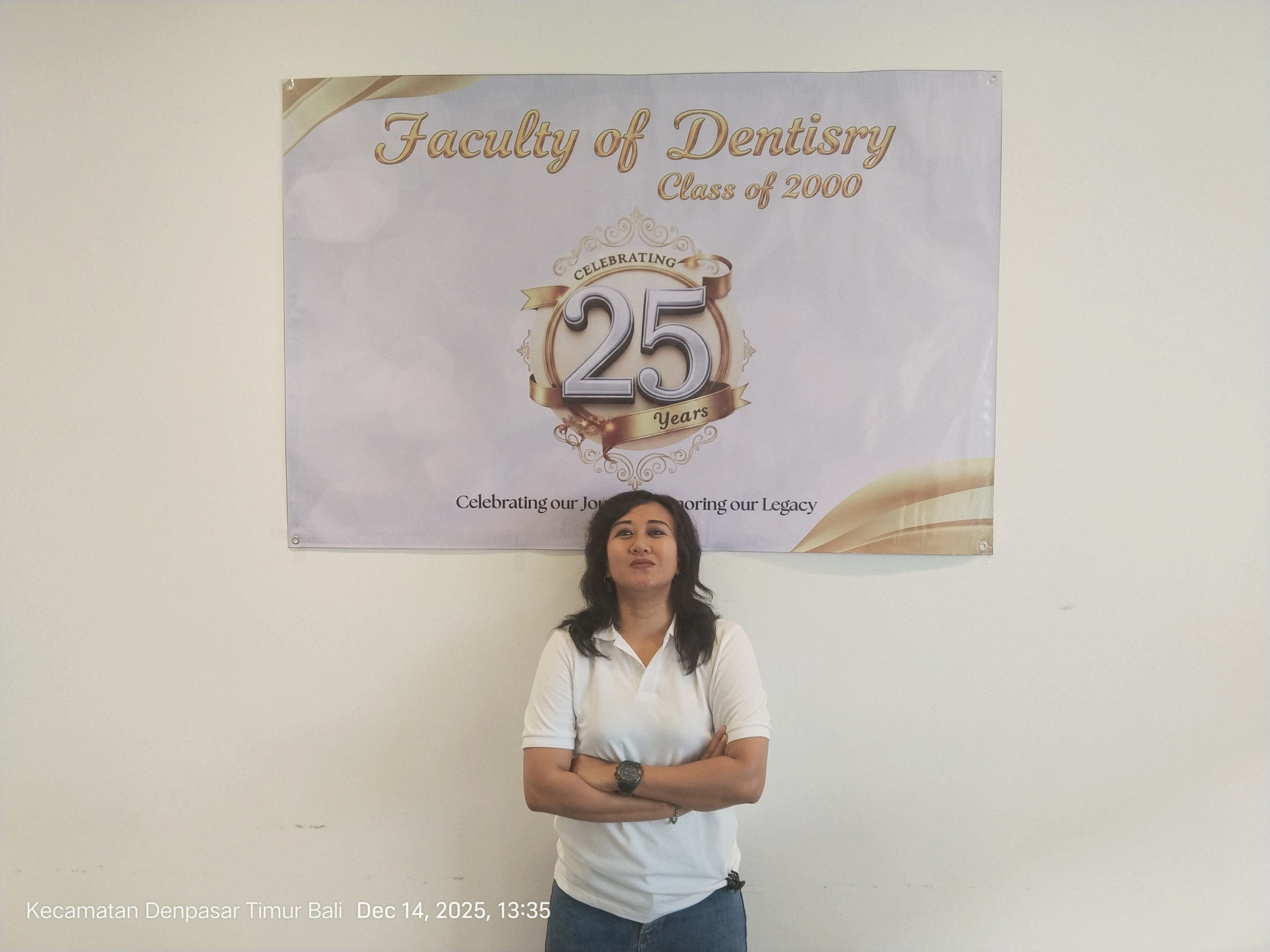 Kali ini Fakultas Kedokteran Gigi Mahasaraswati angkatan 2000 merayakannya di Two Fat Monks, yang ke 25 tahun, Minggu 14 Desember 2025, dengan baju warna khas jas dokter yakni dress code atasan putih.