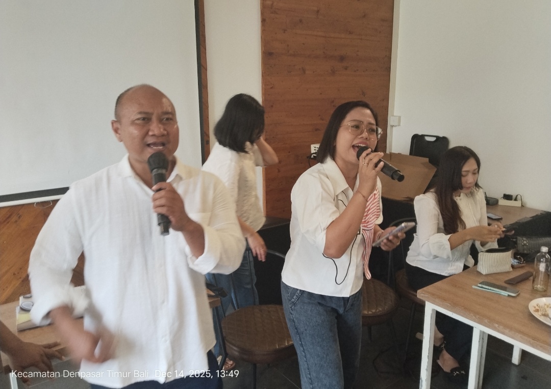 drg Buda Wijaya Putra (kiri) dan drg.Lia Noviana, M.M., (kanan) bernyanyi bersama.