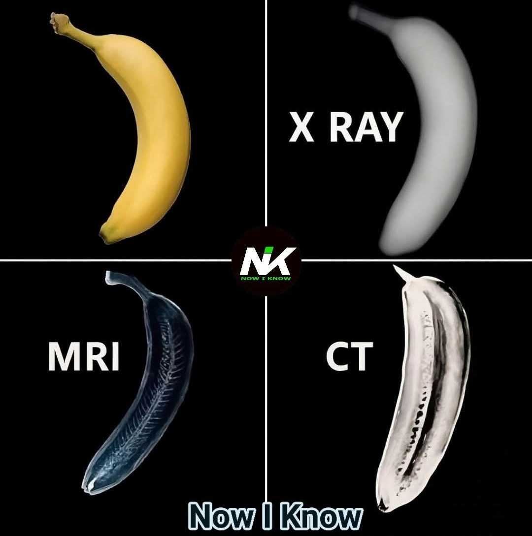 DENPASAR — Siapa sangka, sebuah gambar sederhana dari buah pisang bisa mengajarkan konsep rumit dunia radiologi? Lewat visualisasi unik yang diunggah akun Tech Time dan diulas dalam kuliah populer Now I Know, pisang seolah-olah “menjadi profesor tamu” untuk menjelaskan perbedaan X-ray, CT scan, dan MRI.