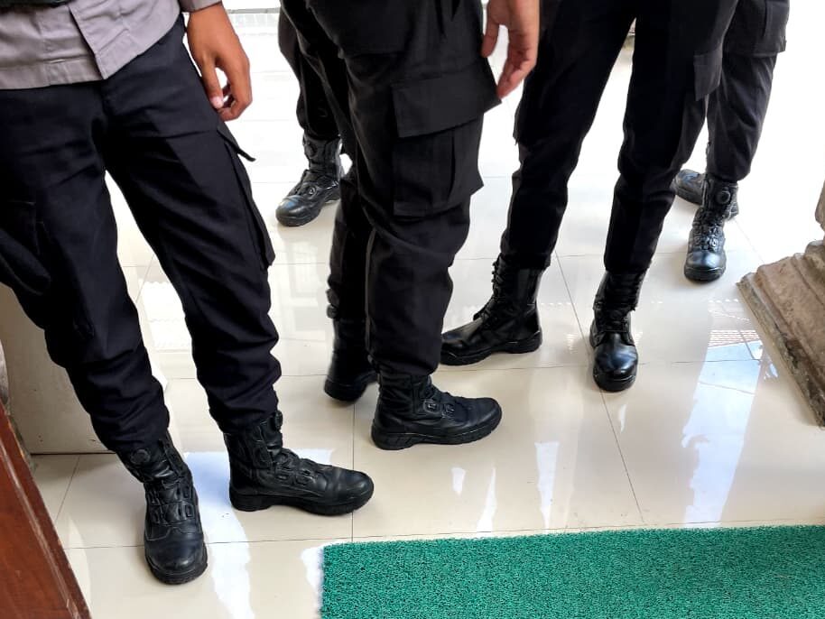 Aparat di kawasan ruang sidang pada 17 Maret 2026. (Dok: LBH Bali).
