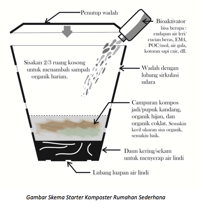 Ia mencontohkan penerapan di rumahnya sendiri yang menggunakan tiga unit komposter berkapasitas 200 liter untuk mengelola seluruh sampah organik rumah tangga.